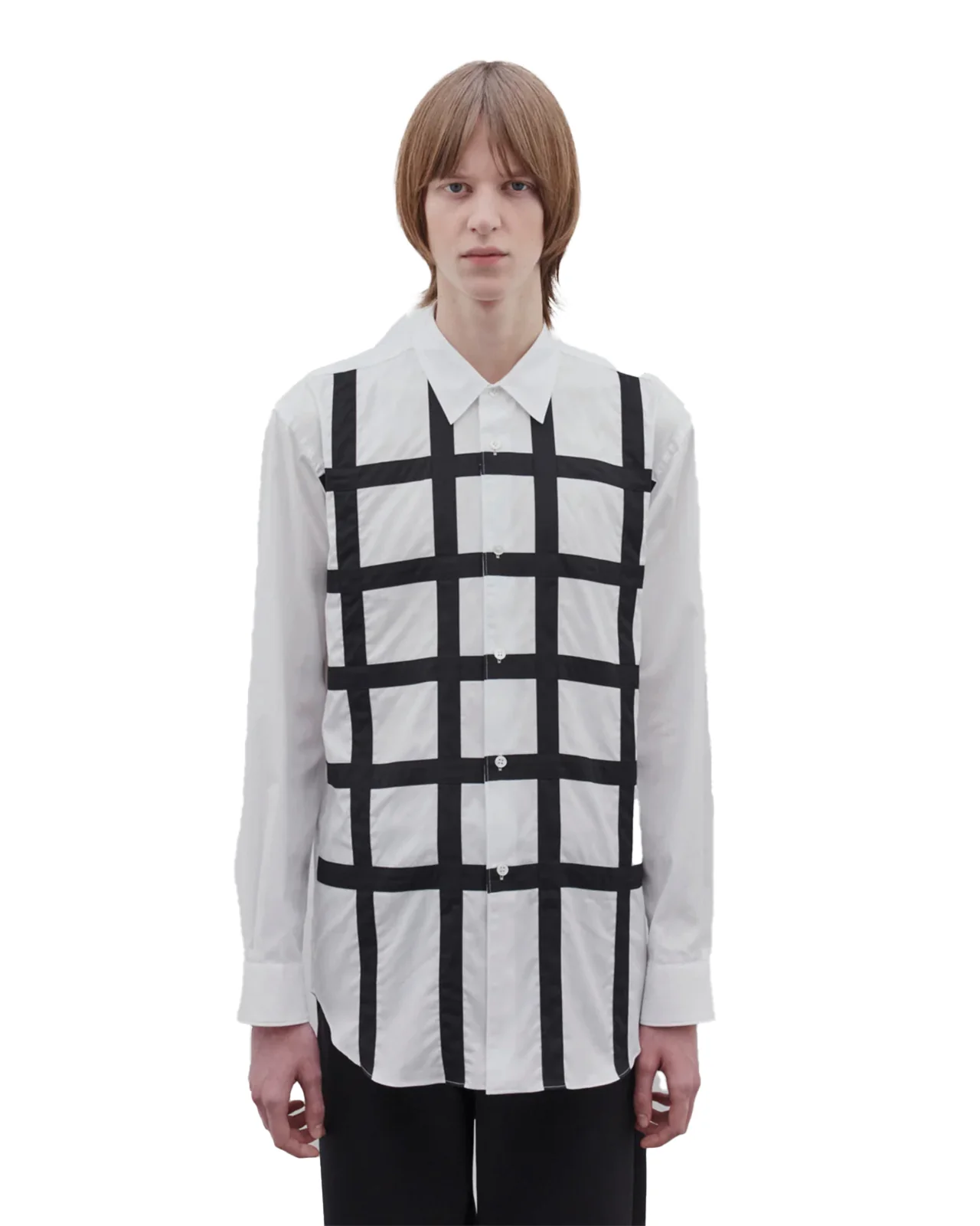 CDG SHIRT-MEN´S BLACK LATTICE SHIRT-FO-B023-S25