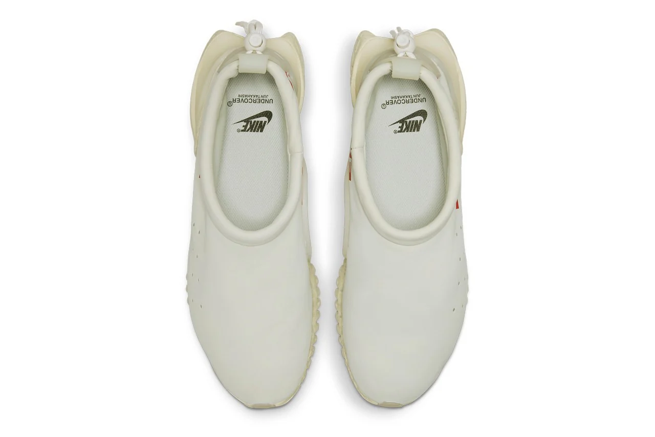 In 2023, Nike and UNDERCOVER will continue to focus on the Moc Flow, Customary UNDERCOVER motifs envelop the pair, while the updated model features a snug textile upper with a brown base topped with beige splotches. The rendition is accented by “CHAOS AND BALANCE” text that wraps the heel counters in “University Red.”